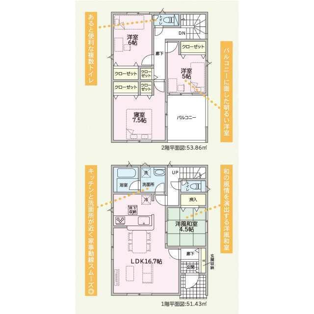 新築売戸建住宅 岡山市中区 福泊 (大多羅駅) 2階建 4LDK